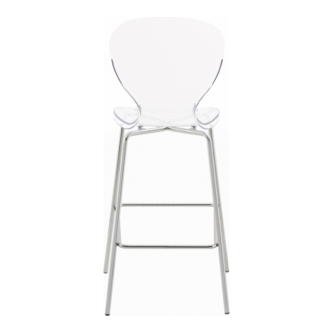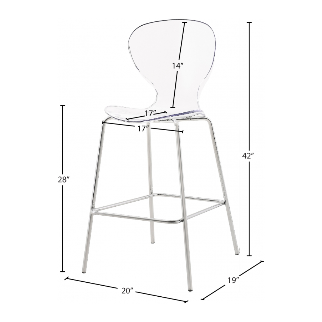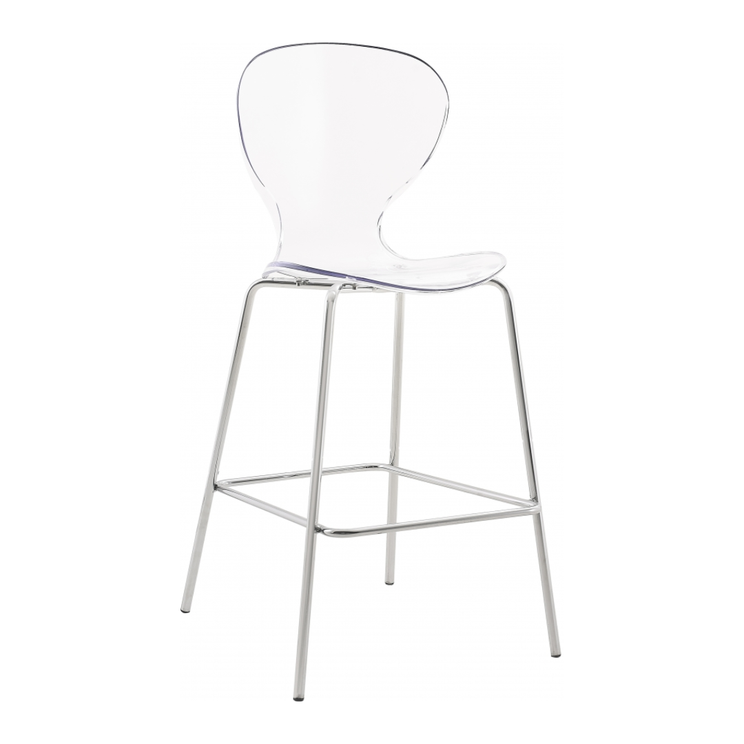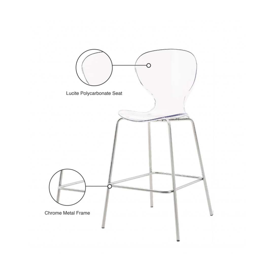 Infuse modernity into your kitchen counter or home bar with this Clarion stool. A translucent seat and back add a bold and contemporary look to your space while relying on the strength of Lucite polycarbonate to ensure sturdy strength and resilience. A classic metal base with a chrome finish contrasts nicely with the translucent top, giving your room a modern vibe that's hard to ignore yet basic and simple at the same time. A foot rest on the bottom of this stool gives you a spot for resting your feet while you wait on your frosty beverage.