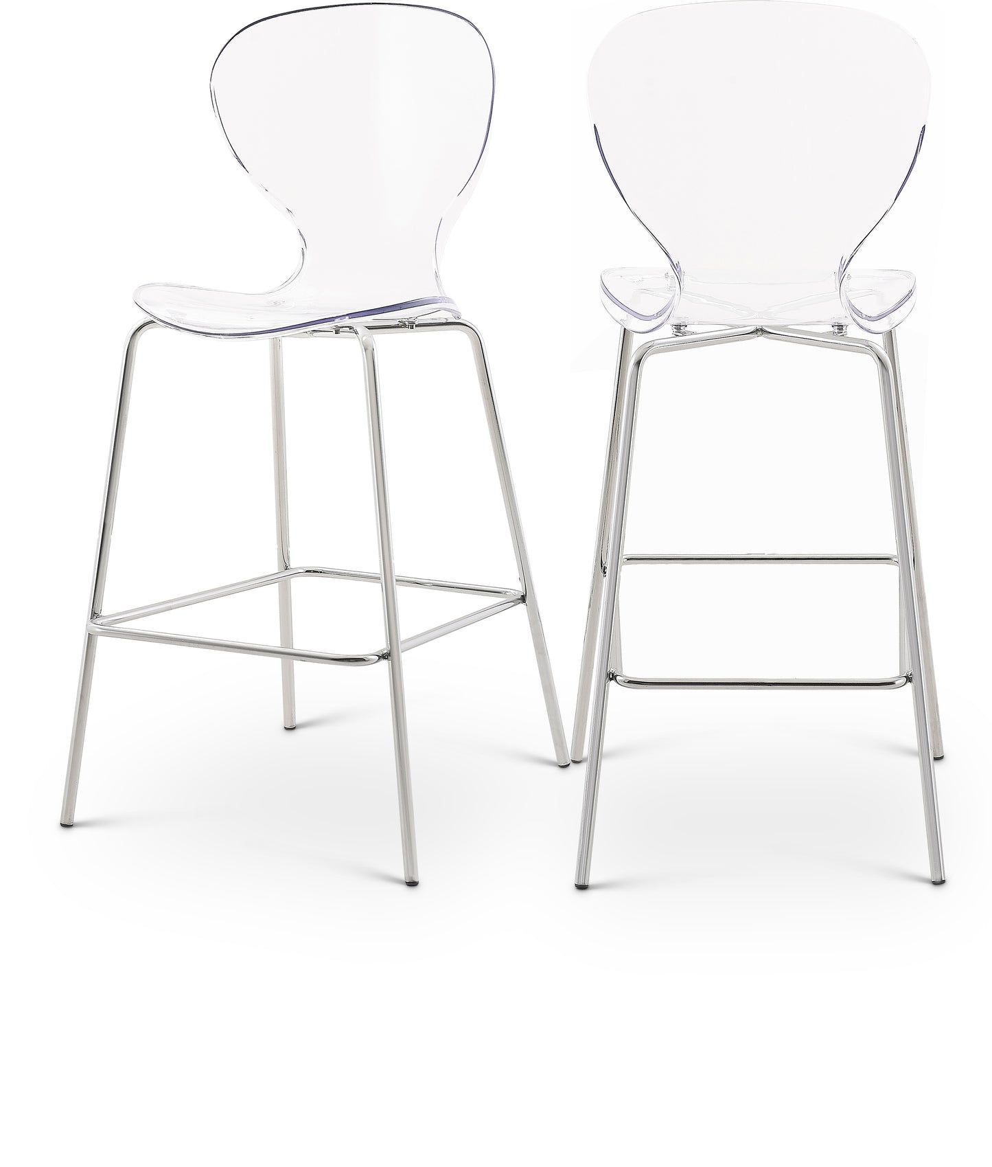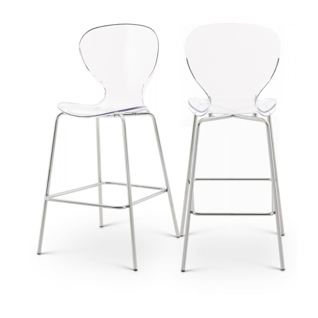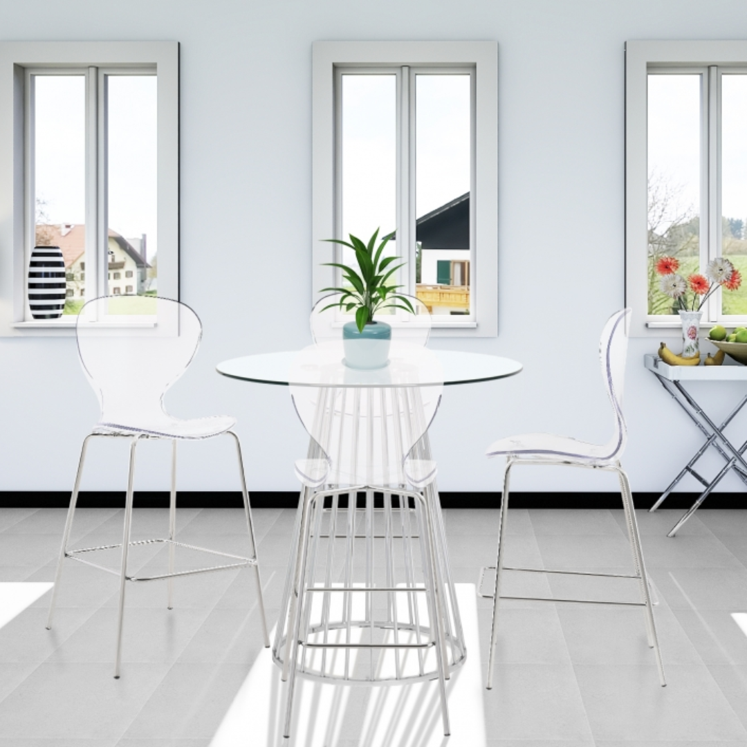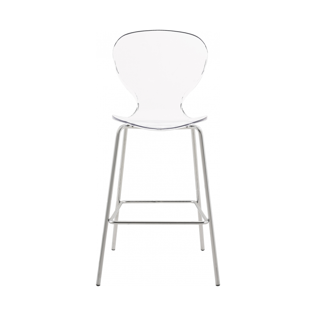 Infuse modernity into your kitchen counter or home bar with this Clarion stool. A translucent seat and back add a bold and contemporary look to your space while relying on the strength of Lucite polycarbonate to ensure sturdy strength and resilience. A classic metal base with a chrome finish contrasts nicely with the translucent top, giving your room a modern vibe that's hard to ignore yet basic and simple at the same time. A foot rest on the bottom of this stool gives you a spot for resting your feet while you wait on your frosty beverage.