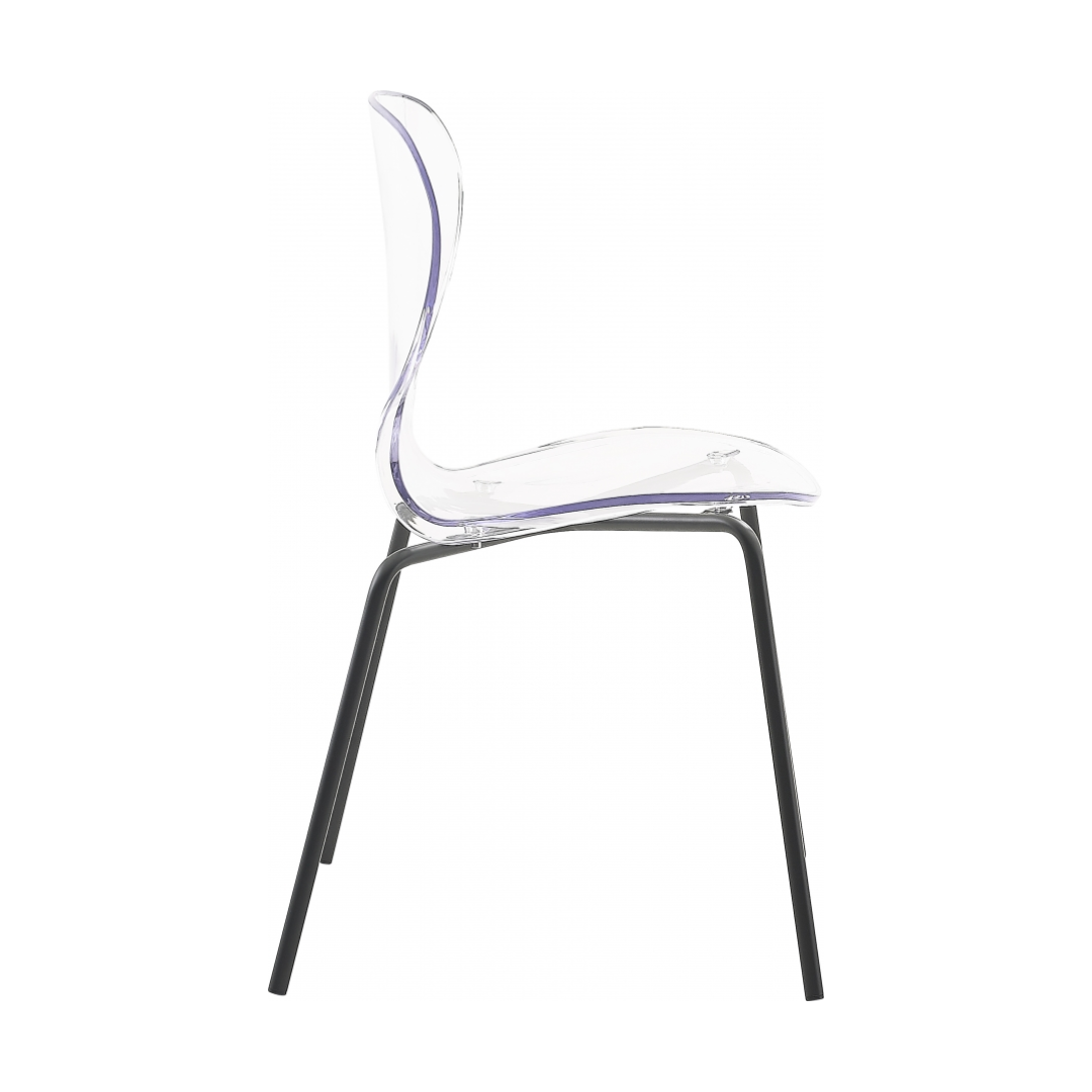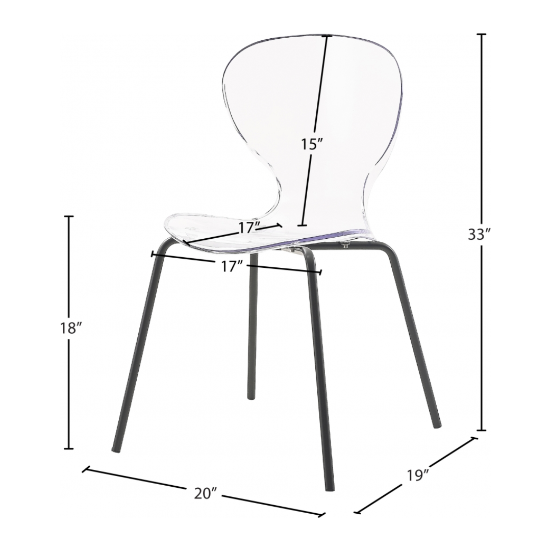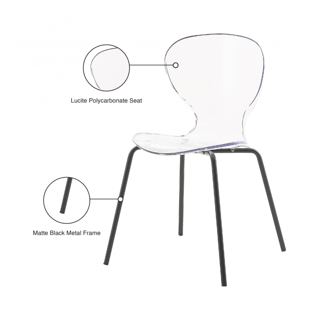 Infuse modernity into your dining room with this Clarion dining chair. A translucent seat and back add a bold and contemporary look to your space while relying on the strength of Lucite polycarbonate to ensure sturdy strength and resilience. A classic metal base with a matte black finish contrasts nicely with the translucent top, giving your room a modern vibe that's hard to ignore yet basic and simple at the same time.