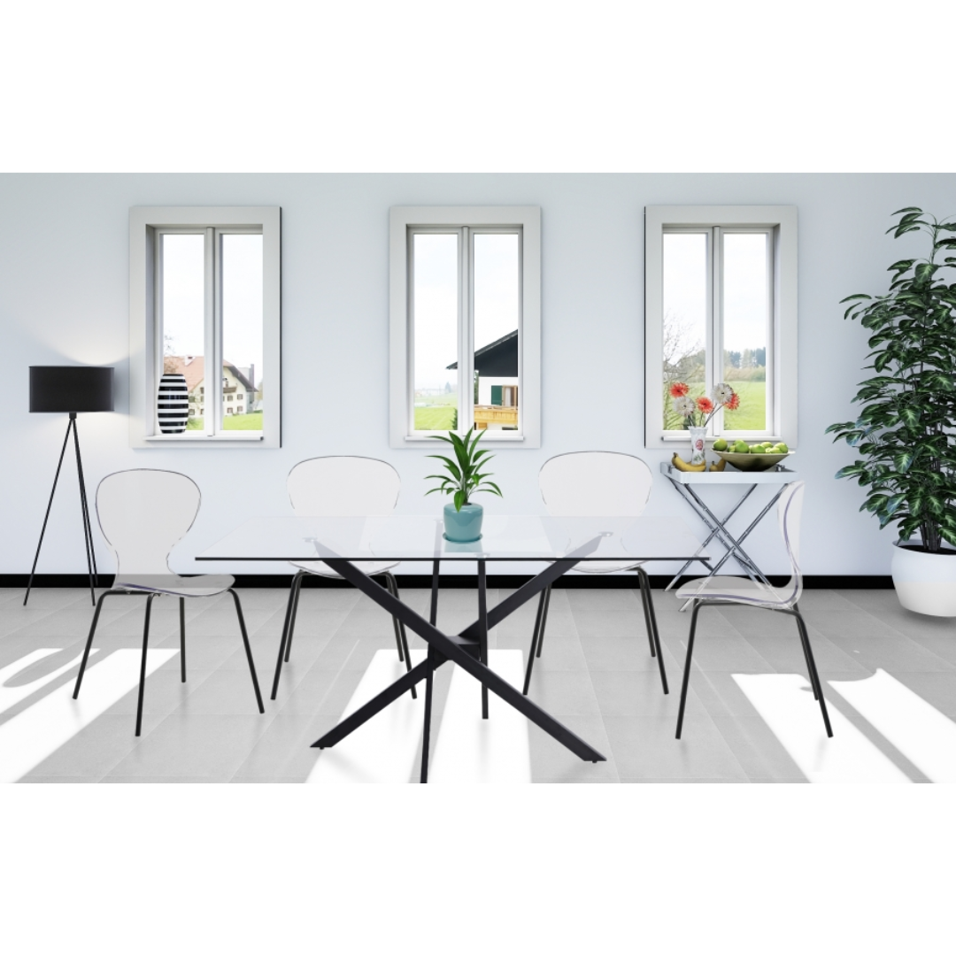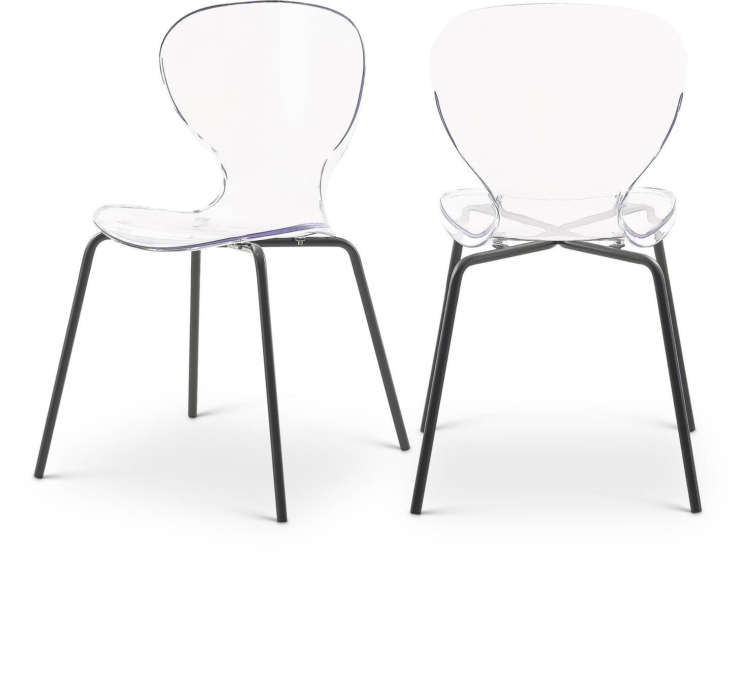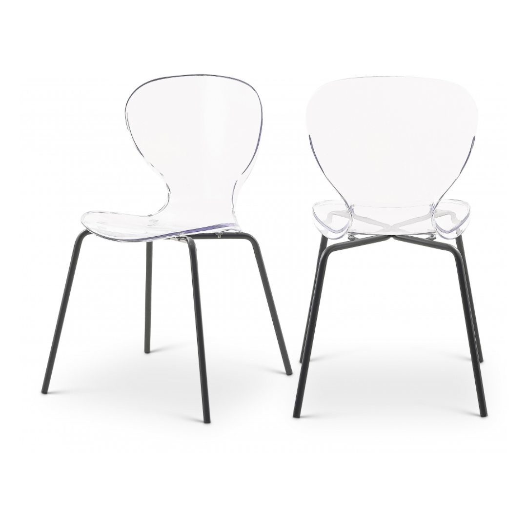 Infuse modernity into your dining room with this Clarion dining chair. A translucent seat and back add a bold and contemporary look to your space while relying on the strength of Lucite polycarbonate to ensure sturdy strength and resilience. A classic metal base with a matte black finish contrasts nicely with the translucent top, giving your room a modern vibe that's hard to ignore yet basic and simple at the same time.