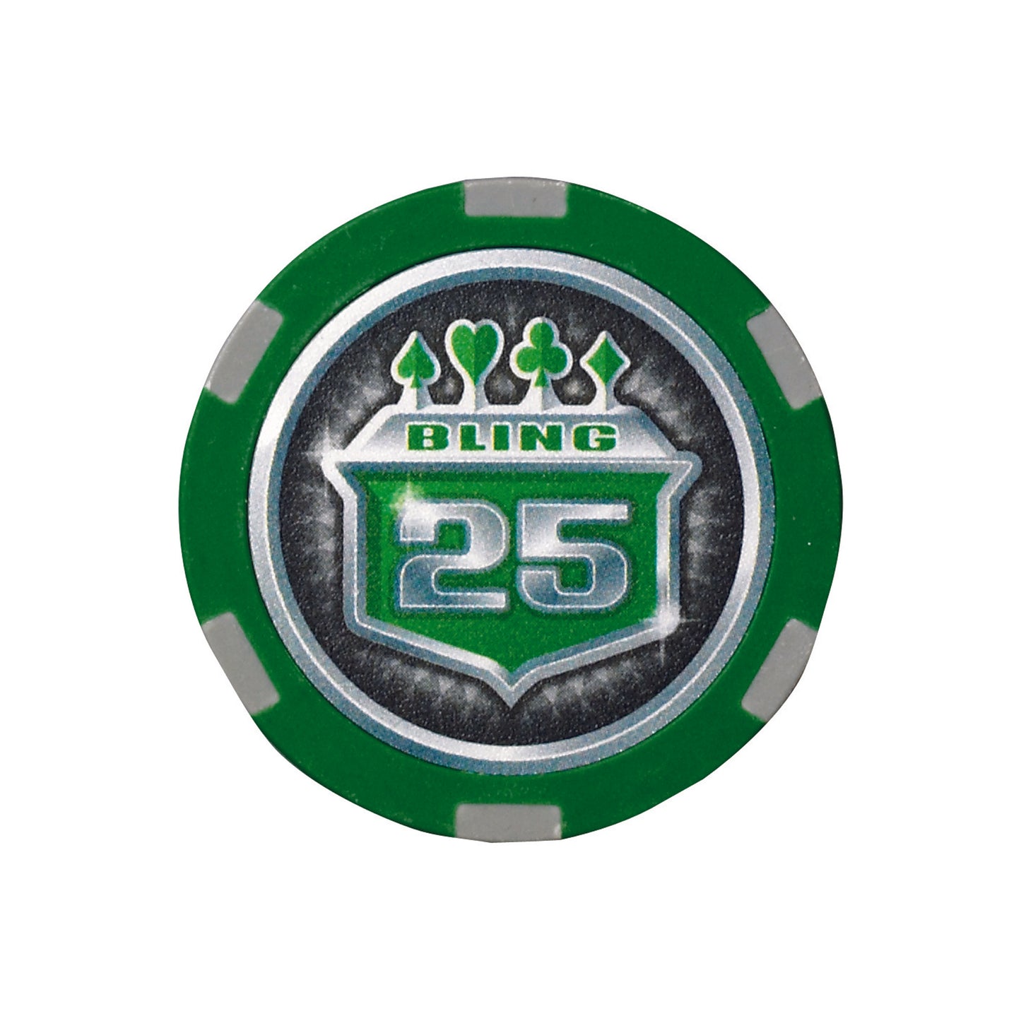 Complete set of 500, 13.5g Claytec, striped poker chips of a wide range of colors and all featuring the Bling designs.