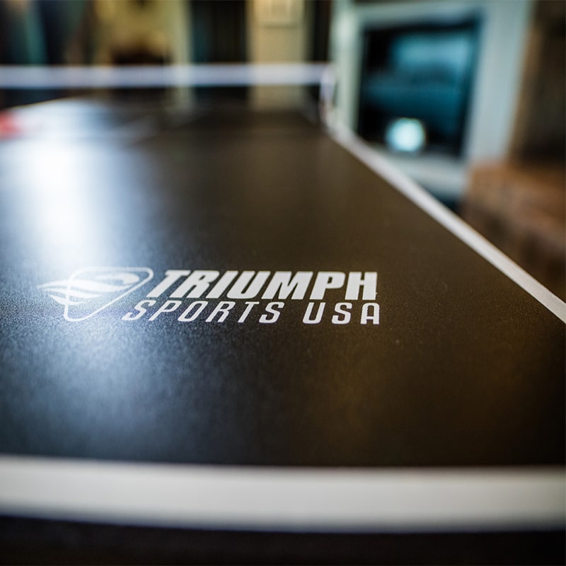The Triumph Phoenix Billiard Table with Conversion Top gives you the choice to play two games on one full-size table. Challenge your opponents to a classic game of pool or an action-packed game of table tennis on the included conversion top. While other conversion tables often sacrifice playability, this 7-foot table maintains its quality on both tables. The table tennis conversion top comes equipped with EVA pads for the underside of the table tennis table, which protect the top rails of the billiard table. Below the table, leg levelers ensure your table is perfectly flat even when the floor is not. The set includes all accessories required for both games: the billiards accessory set includes 2 - 57” billiard cues, a set of 2.25” billiards balls, triangle, brush, and chalk. The table tennis accessory set includes 2 paddles, 2 table tennis balls, and a net post set. Enjoy two classic games in one without sacrificing quality with the Triumph Phoenix!