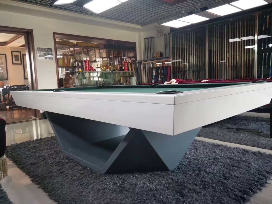 White Billiards tables are customizable with your choice of color to blend with your home. Leather pockets for a classic finish. Contact us to customize your color and design!