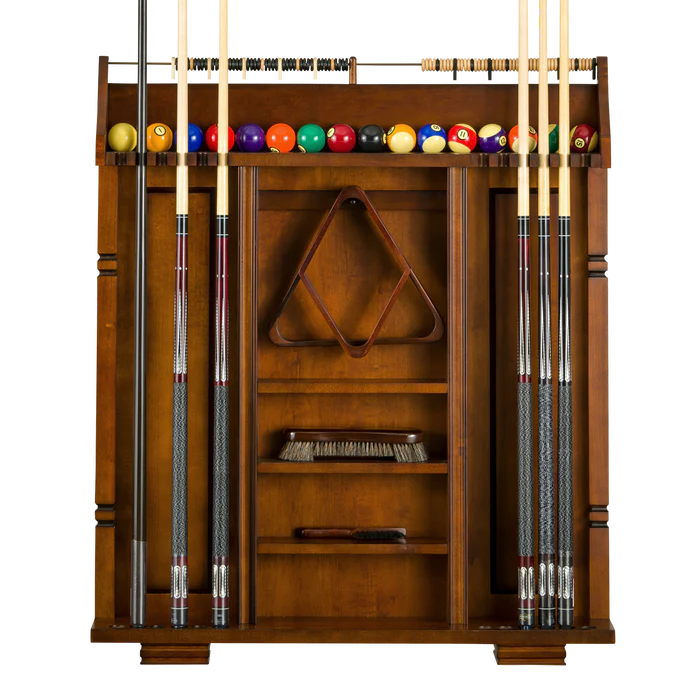 - Holds up to 12 pool cues