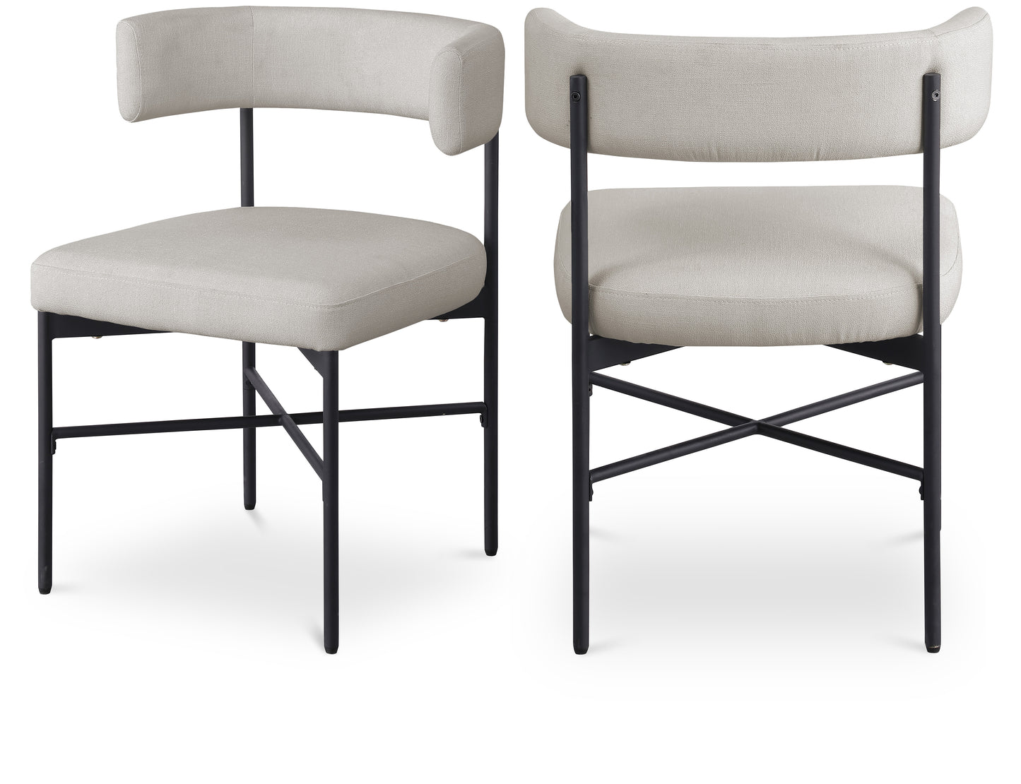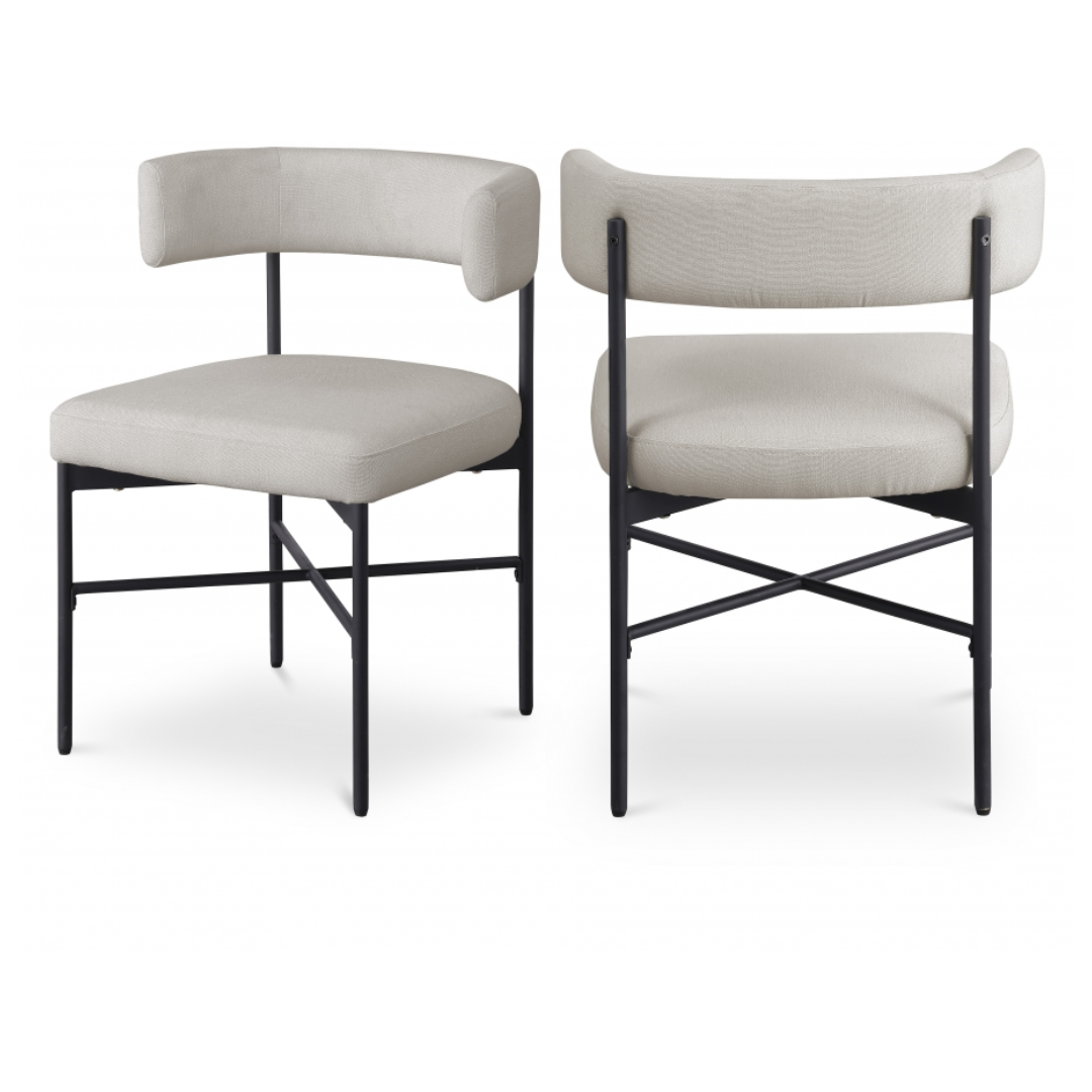 Bring a simple yet elegant touch to your dining area or bar with these Rivage Linen Textured Fabric Dining Chairs. These stools are upholstered in a luxurious, beige linen-textured fabric that is not only durable but also adds a touch of elegance to any space. The matte black metal frame adds to the stools' longevity and makes them a timeless addition to your home. With a perfectly curved back, these dining chairs provide ultimate comfort that will allow you to sit and enjoy your meals or drinks with ease.
