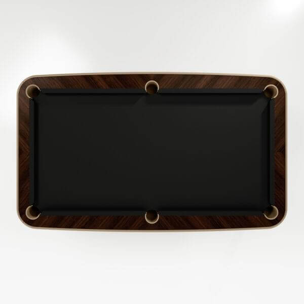 This refined game table can be considered a professional table thanks to some specific features. As far as the surface is concerned, the use of slates is essential to grant perfect balance and maximum precision while playing pool. After laying and flattening the slate, the surface is covered with a specific fabric produced by a Belgian company leader in the sector, Simonis.